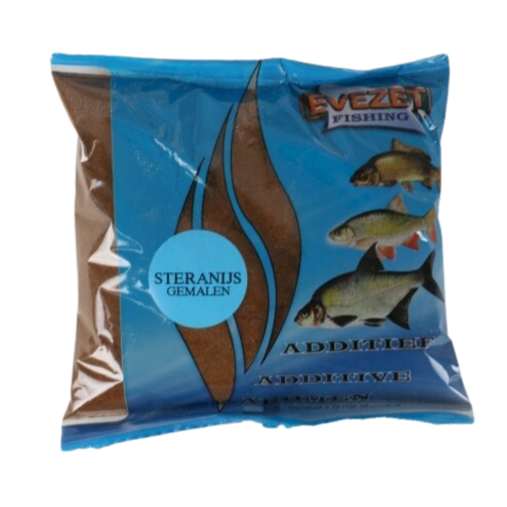 Steranijs 250 gram is een geurstof die de eetlust van de vis sterk bevorderd. Het kan worden gebruikt in zowel oppervlakte als in een bodemvoer. We raden aan om als dosis maximaal 5 % te gebruiken. Steranijs heeft nauwelijks voedingswaarde, het bevordert wel de spijsvertering. Steranijs is misschien wel het meest gebruikte standaard additief dat zowat alle vissen lokt. Het geeft nauwelijks een bindende werking. We raden aan om het spaarzaam toe te dienen.