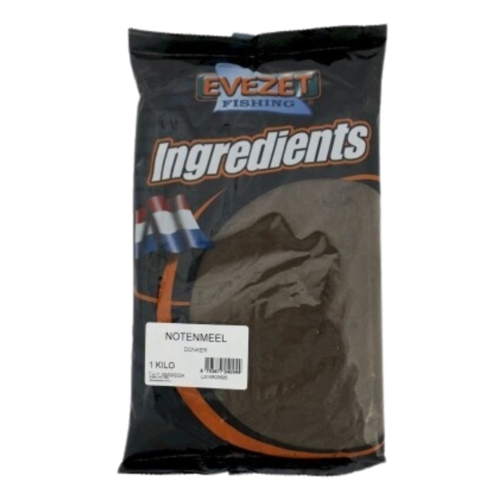 Notenmeel donker is zeer voedzaam en rijk aan olie en doet het lokaas werken. Het meel stijgt en daalt in het water. Wedstrijdvissers gebruiken notenmeel donker hoofdzakelijk voor de bodemvisserij (voorn en grote brasem). Door het hoge oliegehalte is dit meel een goede binder. Bovendien heeft dit product een laxerende werking voor de vis. Het is op zijn best in stromend of diep water. We raden wel een matig gebruik aan, maximaal 20 % in de winter en zomers maximaal 15%.