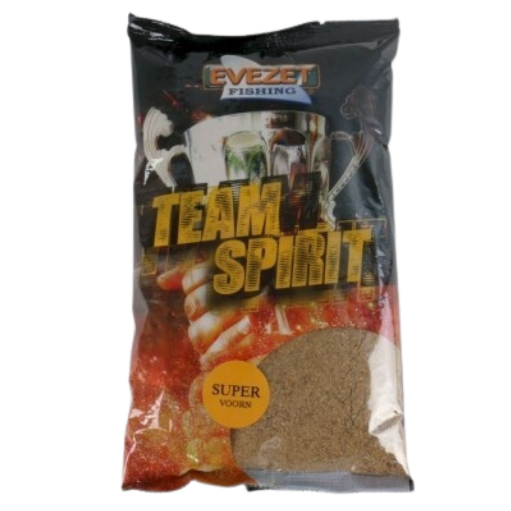 Team Spirit Super Voorn is er voor de visser die zich wil meten met de sterke competitie. Afgestemd op o.a. Voorn en onderling met de andere Team Spirit soorten te mixen. We raden U aan om wanneer u dit wilt de kruidige additieven van Evezet te gebruiken om de mix naar smaak te voorzien van geur of smaak. Ook het inmengen van Evezet leem is populair onder de topvissers. Dit voer bracht Team Evezet veel Nationale en Internationale topresultaten.