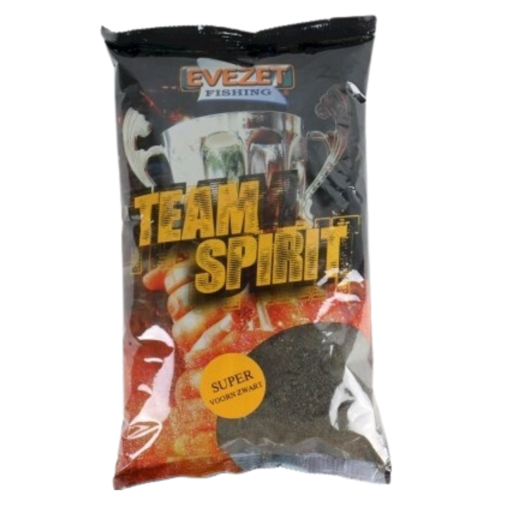 Team Spirit Super Voorn zwart is er voor de visser die zich wil meten met de sterke competitie. Vooral op heldere wateren is de kleur perfect. Het voer is afgestemd op o.a. Voorn en is onderling met de andere Team Spirit soorten te mixen. We raden U aan om wanneer u dit wilt de kruidige additieven van Evezet te gebruiken om de mix naar smaak te voorzien van geur of smaak. Ook het inmengen van Evezet leem is populair onder de topvissers. Dit voer bracht Team Evezet veel Nationale en Internationale topresultaten.