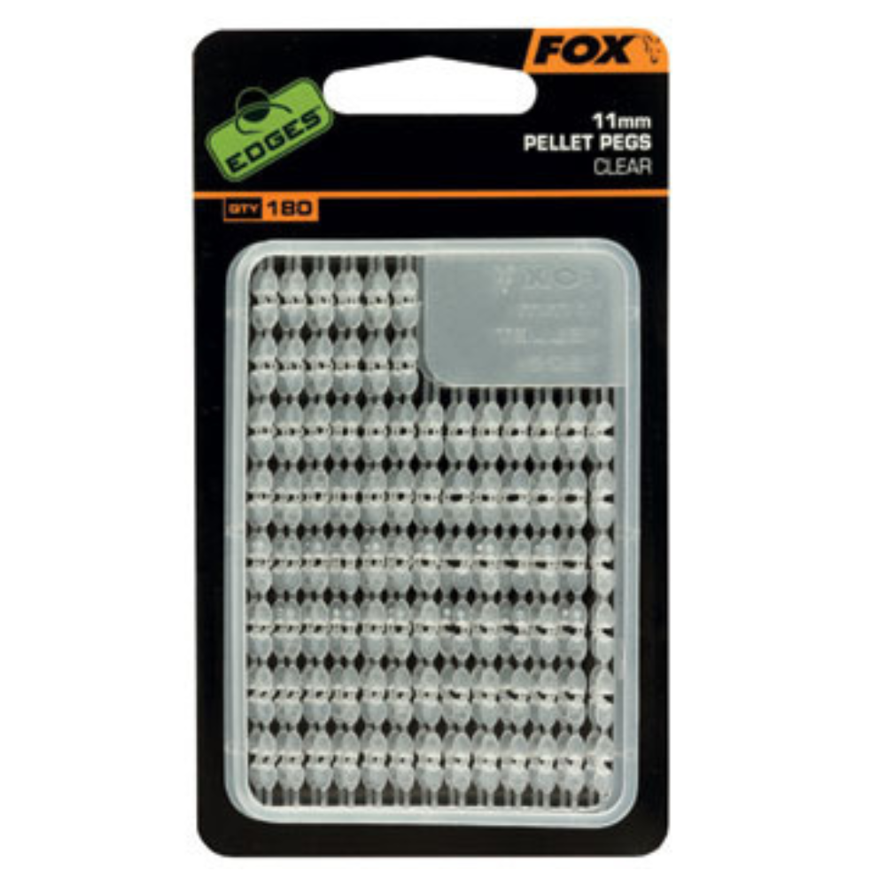 De Pellet Pegs van Fox zijn ontwikkeld voor het effectief vissen met forel- en heilbotpellets als haakaas. De Pellet Pegs zorgen voor een optimale verbinding tussen hair en pellet, zelf als deze zachter in het water wordt. Door gebruik van de Pellet Pegs wordt bijvoorbeeld voorkomen dat het aas tijdens de worp of het vissen losraakt. Het vermindert ook de kans dat kleine vis de pellet loswerkt. De peg kan stevig in de pellet worden vastgezet. Hiervoor dient de pellet eerst met onze 1,5 mm Fine Nut Drill te worden uitgeboord. De peg voorkomt dat er water in de pellet komt, hierdoor blijft de pellet langer hard en kan er langer mee worden gevist. De Pellet Pegs zijn zodanig gekleurd dat ze wegvallen bij forel- en heilbot pellets. De speciale vorm maakt het mogelijk de pellet op diverse manieren te bevestigen. Verkrijgbaar in 11 en 13.