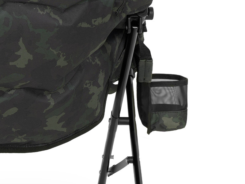 De grootste troef van THIXER is een extra zacht en dik gevoerd matras langs de rand en in het midden. Als u er eenmaal op zit, wilt u niet meer opstaan, zelfs niet als er een vis aan de haak zit! De stoel is bekleed met een 600D-stof met een originele BANX-camouflage voor extra duurzaamheid, zelfs bij veelvuldig gebruik.