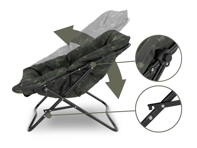 De stoel is gebouwd op een X-vormig frame dat u in enkele seconden kunt in- en uitklappen. Dit garandeert een hoge mate van stabiliteit, maar blijft toch compact wanneer opgevouwen. Bovendien kan hij dankzij de kunststof klemmen in drie verschillende standen worden versteld. Hij is ook voorzien van een veiligheidsmechanisme om te voorkomen dat de stoel inklapt wanneer u erop gaat zitten.