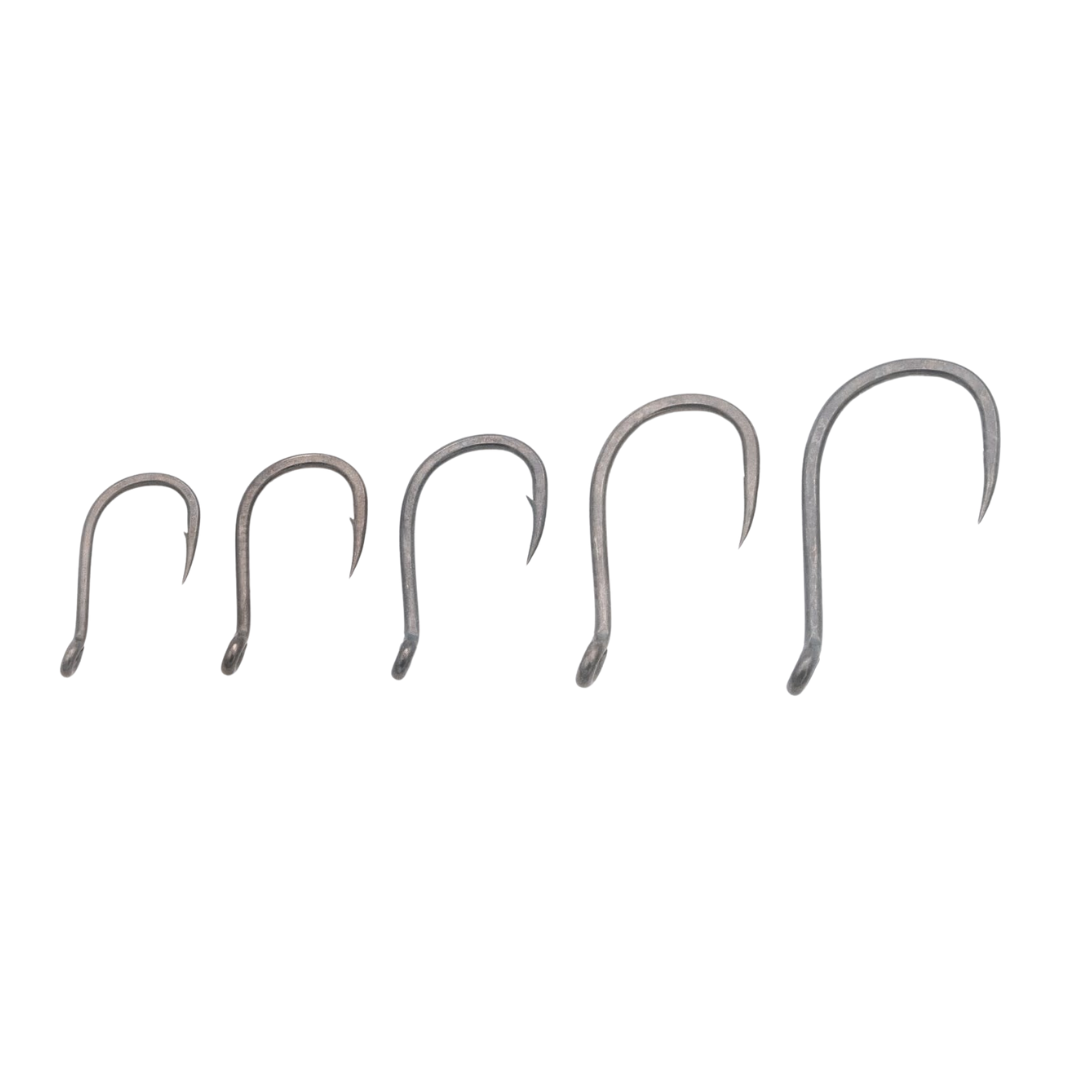 Deze haak is speciaal ontworpen voor gebruik met stijve onderlijnen en presentaties zoals de chod rig of scharnierende stijve rig, maar kan ook worden gebruikt met andere pop-up presentaties. Het heeft een naar buiten gebogen oog om een doorlopende bocht te geven van de onderlijn naar de haak bij gebruik van stijve presentaties, en de rest van zijn vorm is gebaseerd op het iconische Wide Gape-patroon, zij het in een iets dikkere draad. Het is een ongelooflijk sterke haak, zoals Darrell Peck zal bevestigen, die karpers heeft gevangen tot meer dan 70lb op de maat 8-versie. De licht gebogen punt is zeer scherp, en de weerhaak is van een formaat dat de penetratie niet belemmert, maar eenmaal ingezet, helpt de haak stevig op zijn plaats te blijven. De Choddy is verkrijgbaar in uitvoeringen met weerhaak en zonder weerhaak, in de maten 12, 10, 8, 6 of 4, met tien haken in elke verpakking.