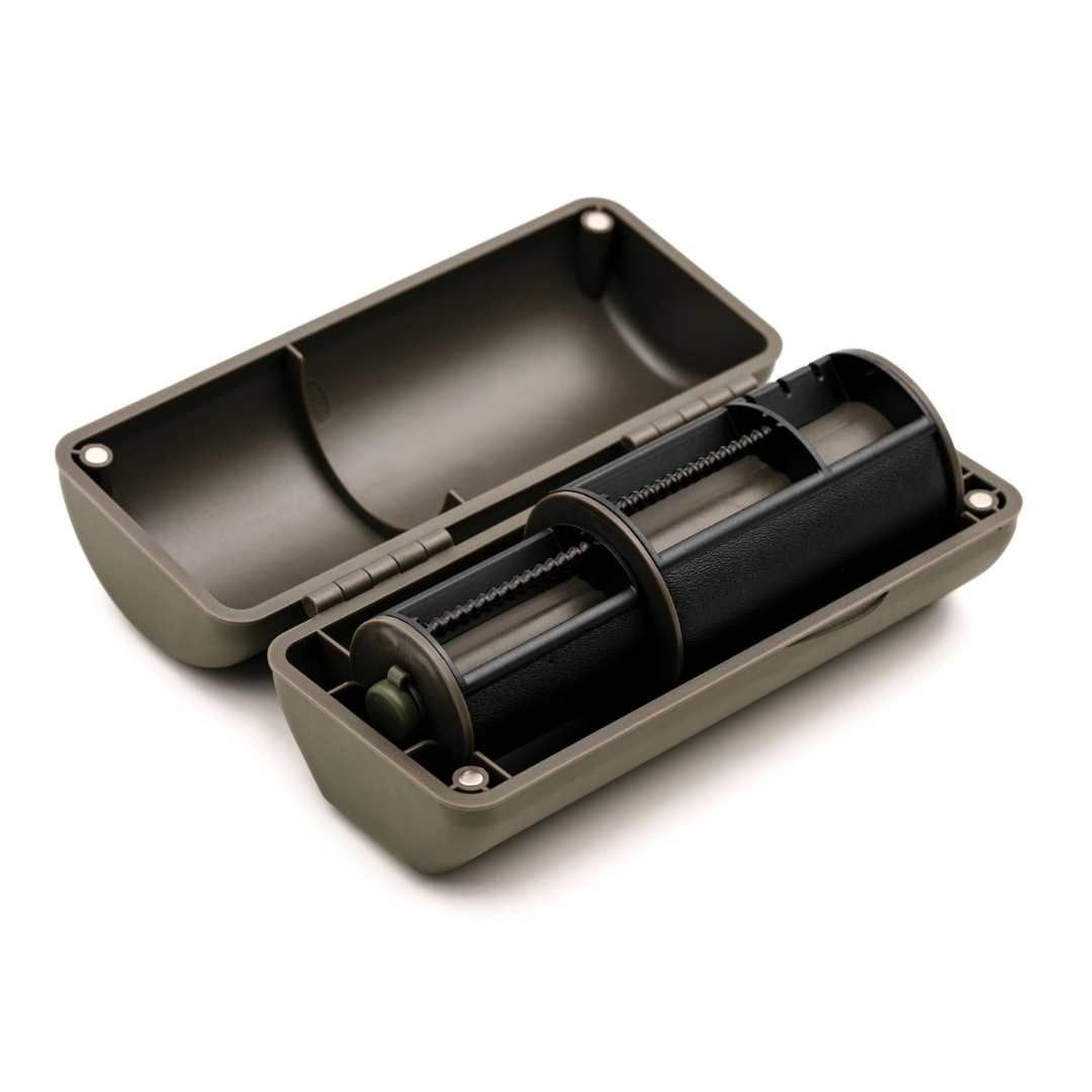 De ChodSafe is het perfecte opbergsysteem voor elke visser die chod rigs gebruikt en stelt u in staat om ze in perfecte staat te houden totdat u ze nodig hebt. Het is gemaakt van robuust plastic en afgewerkt met zacht aanvoelend rubber, met een deksel dat openklapt en gesloten wordt gehouden door magneten wanneer het niet in gebruik is, om morsen te voorkomen. Binnenin zijn er twee verschillende cilindrische, verwijderbare secties bedekt met schuim om uw chod rigs op te slaan, waarvan de verschillende diameter u in staat stelt om de perfecte curve te behouden voor zowel uw korte als lange rigs. Haken worden op hun plaats gehouden door een bewerkte, gegroefde aluminium staaf, wat ook eventuele beschadiging van de punten tijdens het vervoer voorkomt, en het andere uiteinde van de rig wordt bevestigd aan het schuim via een pin - 30 pinnen worden meegeleverd met elke ChodSafe. Naast het kunnen vasthouden van 28 voorgemonteerde chod rigs, is er ook ruimte voor drie leaders compleet met Heli-Safe Systems. Wanneer de cilinder uit de behuizing wordt gehaald, kunt u een handgreep uit een uitgesneden handvat halen, dat is ontworpen om uw te helpen de perfecte curve in uw rigs te stomen zonder uw vingers te branden.