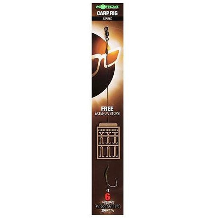 De Dark Matter Rig is een favoriet van Neil Spooner en is heel eenvoudig te maken. Maar als je het jezelf makkelijk wilt maken, of weinig tijd hebt, dan is deze kant-en-klare versie de perfecte keuze. Hij kan gebruikt worden met zowel bodem- als wafter-stijl haakaas, en dankzij de meegeleverde Extenda Hair Stops is hij geschikt voor vrijwel elk formaat aas (hoewel de lengte van de hair varieert afhankelijk van de haakmaat), of zelfs met verschillende afstanden tussen haak en aas. De rig is gemaakt met een Wide Gape haak, maar met een stukje krimpkous voor een agressievere hoek en betere inhaking, en een stukje siliconen zorgt ervoor dat de hair precies op het juiste punt van de haak afkomt, waardoor hij goed kan draaien en zich vastzetten.