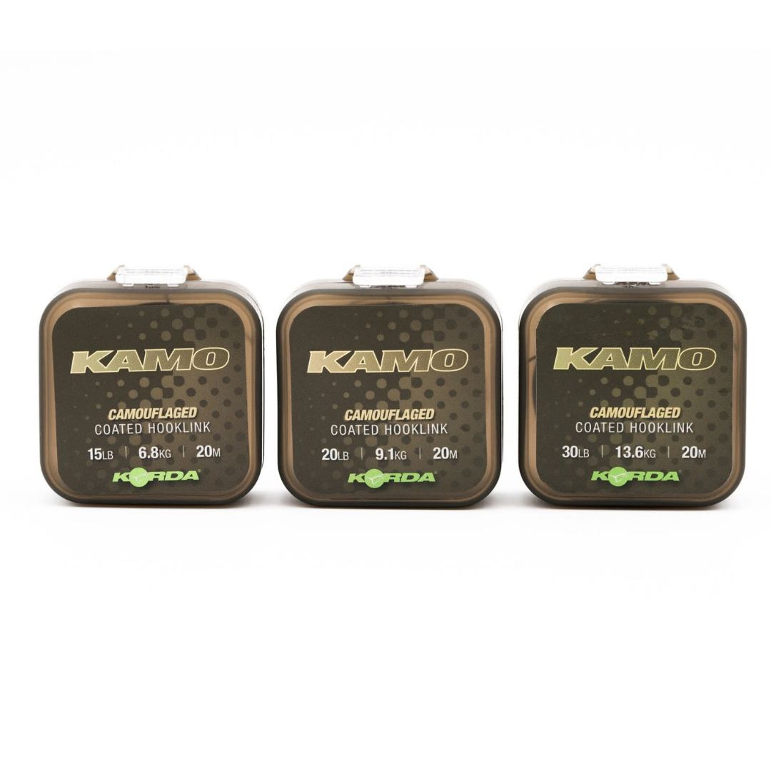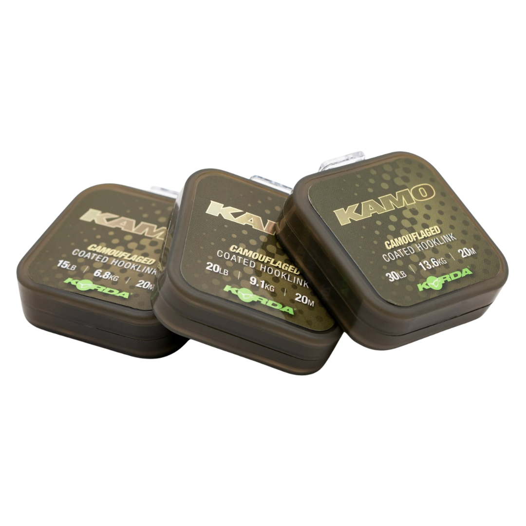 Deze gecoate gevlochten lijn is ongelooflijk sterk en is verkrijgbaar in een reeks breeksterktes waardoor het geschikt is voor gebruik zowel in Nederland als op de meest uitdagende locaties in Europa voor enorme karpers, zoals bij het vissen op het beruchte Rainbow Lake in Frankrijk. De binnenste vlecht is zeer bestand tegen schuren, en de camouflagecoating zorgt ervoor dat uw rigs opgaan in de bodem van het meer en het moeilijk maakt voor de karper om ze op te merken. De coating is sterk genoeg zodat Kamo geknoopt kan worden zonder scharnierpunten te creëren waar u ze niet wilt, maar is ook zeer eenvoudig te strippen zoals u wilt bij het maken van presentaties zoals een combi-rig. Kamo wordt geleverd op een spoel van 20 meter en in een ruime keuze aan breeksterktes: 15lb, 20lb, 30lb, 50lb, 65lb en 80lb.