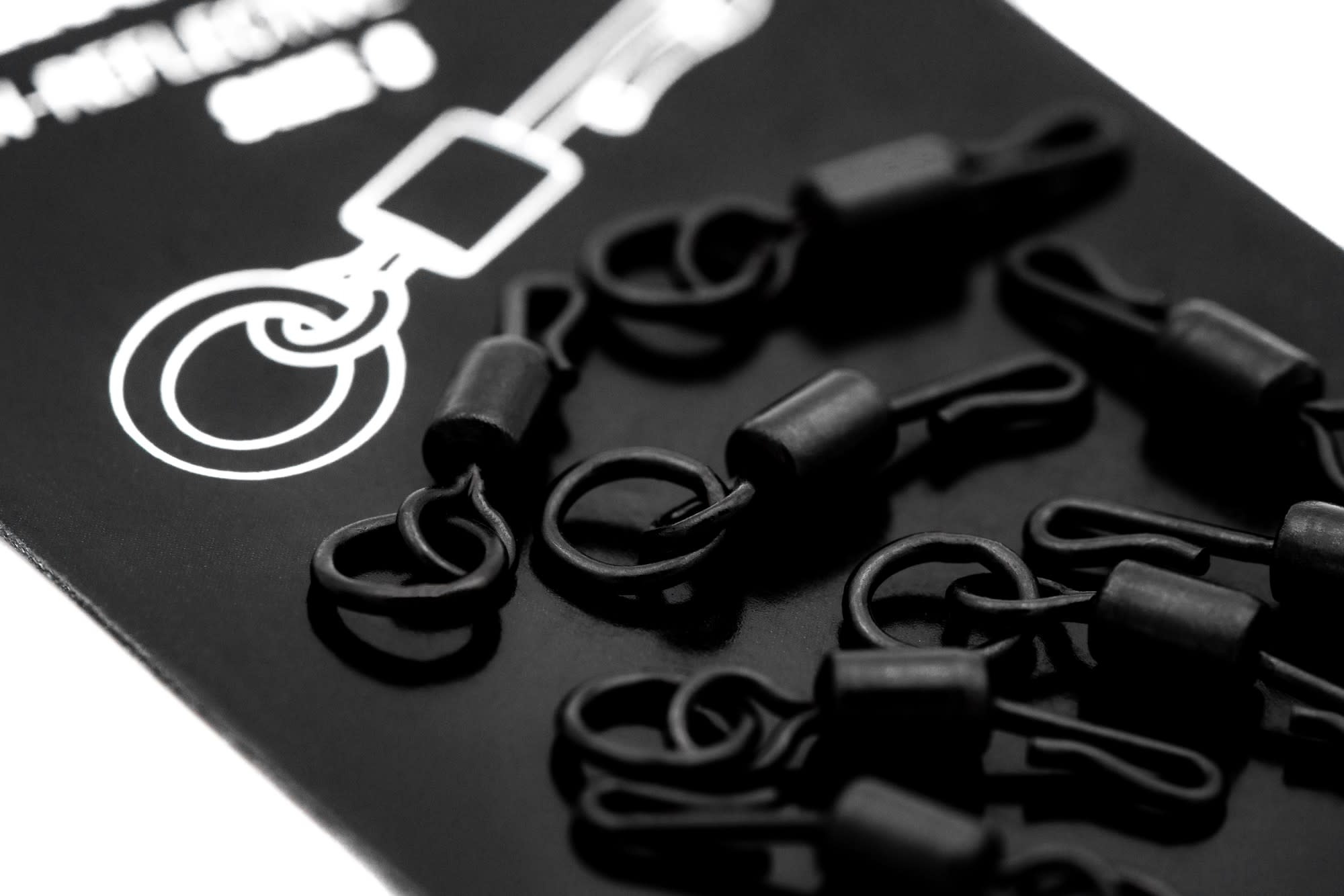 De Quick Change Ring Swivel is specifiek ontworpen voor gebruik met elke helikopteropstelling, zodat u gemakkelijk uw onderlijn kunt veranderen. Er zijn twee verschillende maten QC Ring Swivel beschikbaar - maat 8 of maat 11 - waarbij het ringgedeelte is ontworpen om te worden geregen op welk type leader u ook gebruikt voor uw helikopterrig, of op uw hoofdlijn als u een naked opstelling gebruikt. Uw onderlijn kan dan eenvoudig aan of losgekoppeld worden van de clip, zolang u een rig met een lus aan het uiteinde gebruikt, en alles kan netjes op zijn plaats worden gehouden met een Dark Matter Anti-Tangle Sleeve, of iets vergelijkbaars. De QC Ring Swivels zijn afgewerkt met een niet-reflecterende coating en elk pakket bevat acht wartels.