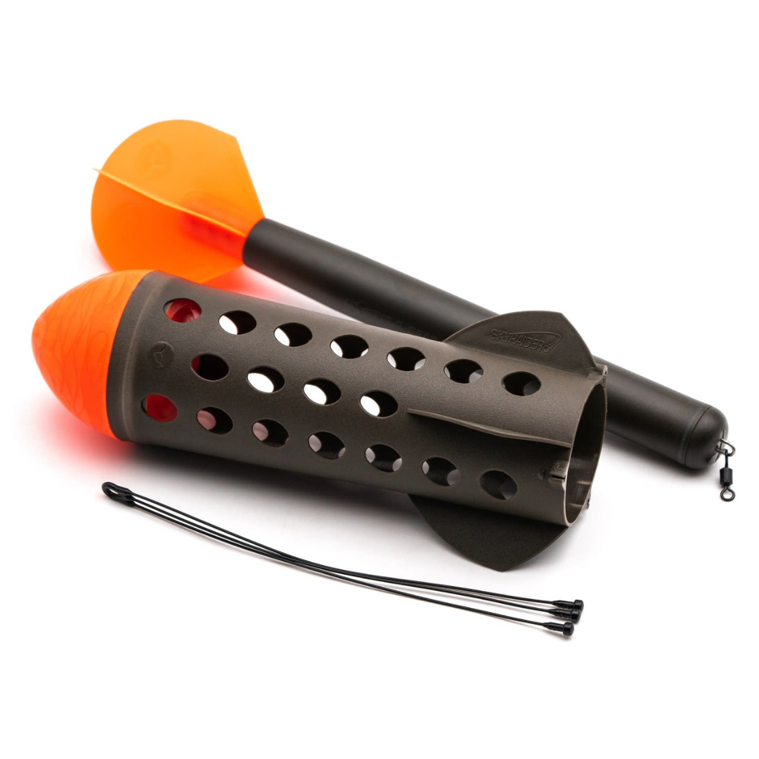 Deze handige set bevat een Dropzone Marker Float om uw stek in het water te markeren, plus een Skyraider Spod waarmee u dat gebied kunt voeren zodra u het hebt gelokaliseerd. De Dropzone Marker werpt goed en komt gemakkelijk naar het oppervlak. Het heeft een feloranje bovenkant om het zelfs op grote afstand gemakkelijk zichtbaar te maken. De Skyraider Spod is ontworpen om ver en zeer recht te kunnen worden geworpen, dankzij zijn vorm en vluchten die het stabieler maken in de lucht. Het kan worden gebruikt met boilies of particles en heeft drainagegaten, die ook helpen bij het snel legen zodra het het water raakt. Elke set bevat één van elk.
