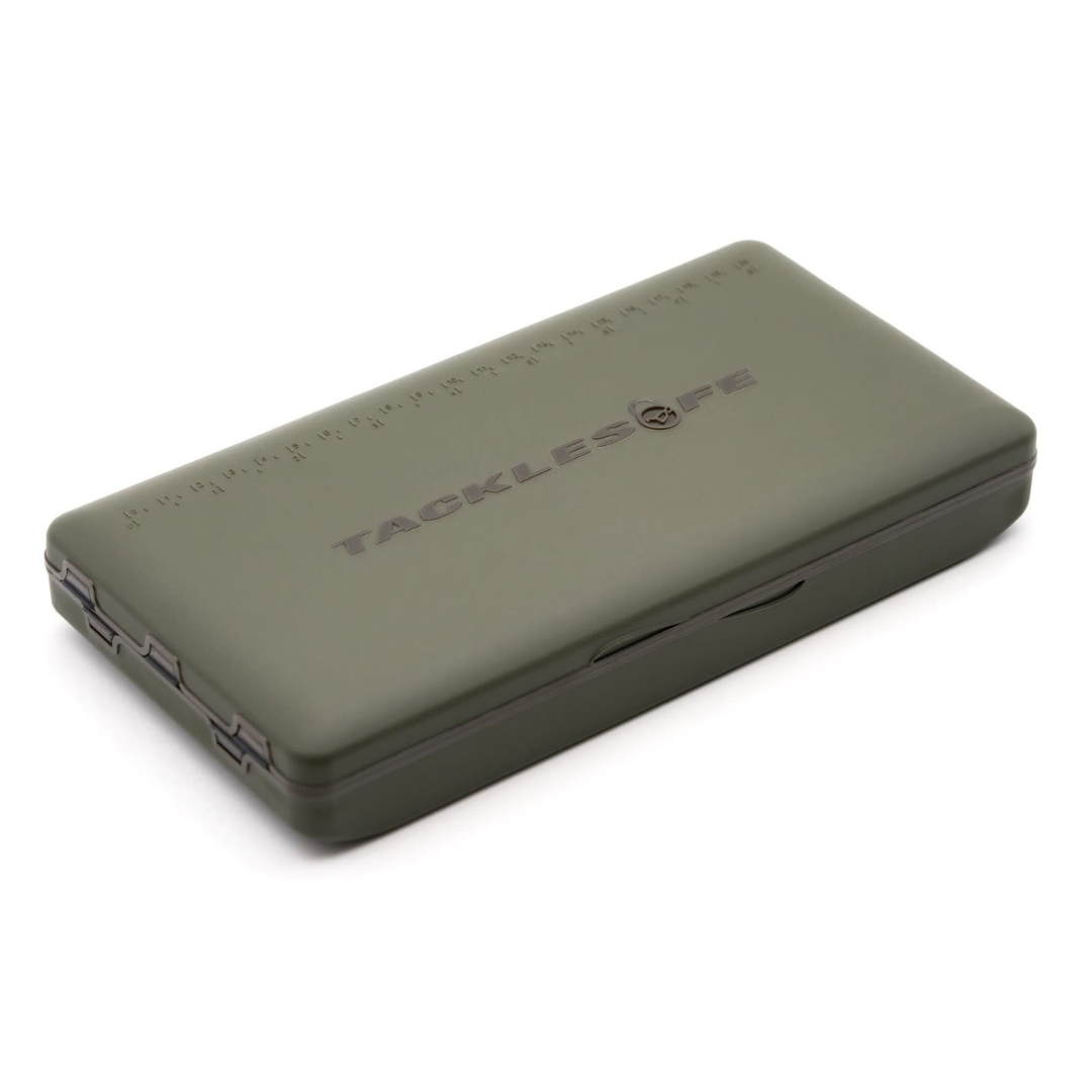 Na het succes van onze Rig Safe-serie is de Tackle Safe ontwikkeld voor de vissers die essentiële items van terminal tackle zo compact mogelijk willen meenemen. Gemaakt van hetzelfde zachte, hoogwaardige kunststof als de Rig Safe, beschikt het over hetzelfde magnetische vergrendelingsmechanisme om te voorkomen dat het per ongeluk opengaat. Bovendien is er een liniaal van acht inch op gemarkeerd om u te helpen bij het knopen van rigs. Met slechts 24 cm lengte past het gemakkelijk in de zijzak van een draagtas of rugzak, of zelfs in uw zak, waardoor het snel toegankelijk is wanneer u bij uw visplek aankomt, of zelfs als u licht bepakt gaat stalken. Aan de binnenkant bevindt zich een groot open compartiment dat ideaal is voor het opbergen van onderlijnmateriaal, rig-tools en dergelijke. Aan dezelfde zijde bevinden zich ook acht compartimenten die toegankelijk zijn via heldere flip-top deksels en ideaal zijn voor Lead Clips, Tail Rubbers, Heli-Safe Beads, en alles van een vergelijkbare grootte. Aan de andere kant van de Tackle Safe bevinden zich twee grotere afgesloten compartimenten, met ruimte voor items zoals pakjes haken, en een dozijn kleinere, ondiepere compartimenten, ook toegankelijk via flip-top deksels, die ideaal zijn voor losse wartels, rig-ringen, Kickers, shrink tubing, of vergelijkbaar.