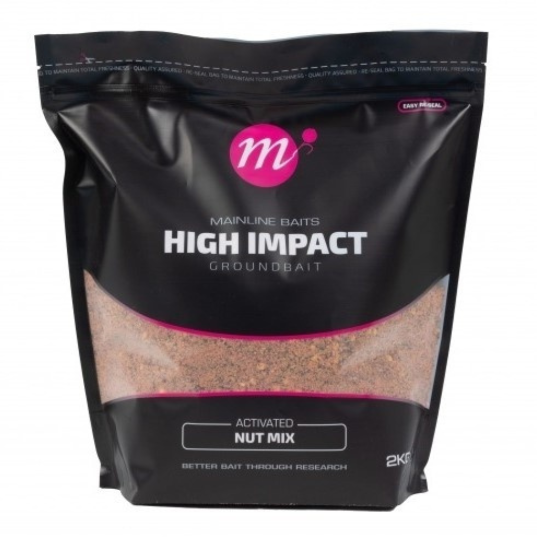 Mainline High Impact Groundbait gebruikt een combinatie van gemalen partikels, diverse noten en een selectie actieve versterkers en stimulanten.