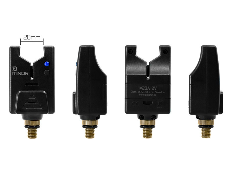 De beetmelder zelf wordt gevoed door een duurzame 12V-batterij van 23A. Schakel hem AAN/UIT door de knop twee seconden ingedrukt te houden. Na het inschakelen knippert de gekleurde led drie keer, bij het uitschakelen één keer. Wanneer het apparaat is ingeschakeld, kunt u kiezen uit 5 volumestanden, waaronder de stille modus. De led licht na elke beet 10 seconden op.