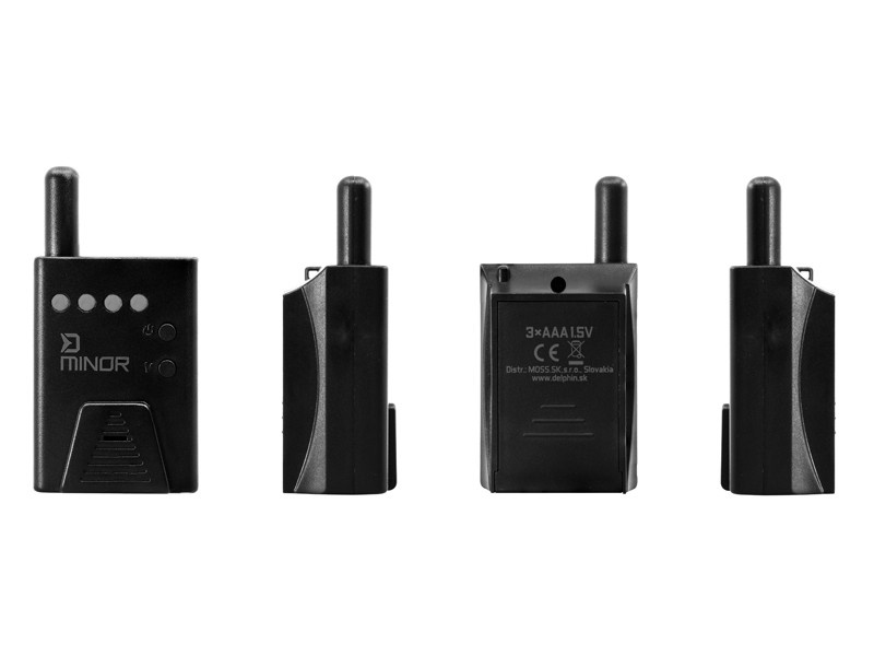 De beetmelder zelf wordt gevoed door een duurzame 12V-batterij van 23A. Schakel hem AAN/UIT door de knop twee seconden ingedrukt te houden. Na het inschakelen knippert de gekleurde led drie keer, bij het uitschakelen één keer. Wanneer het apparaat is ingeschakeld, kunt u kiezen uit 5 volumestanden, waaronder de stille modus. De led licht na elke beet 10 seconden op.