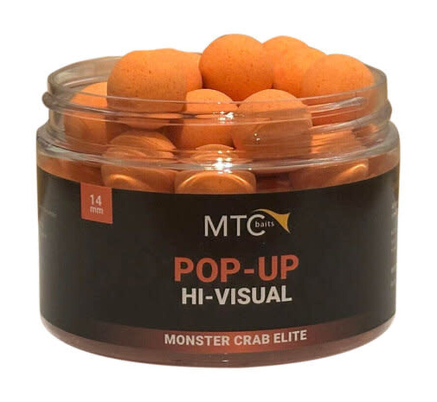 De MTC Baits Hi-Visual Pop-ups - Monster Crab Elite zijn voorzien van dezelfde geur- en smaakstoffen als de gelijknamige boilies. Daarnaast zorgt de opvallende kleur van deze pop-ups ervoor dat ze onderwater goed opvallen. De MTC Baits Hi-Visual Pop-ups - Monster Crab Elite zijn ‘needle friendly’ en hebben een zeer hoog drijfvermogen.