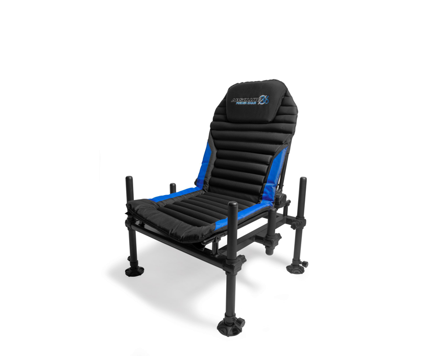 De Absolute 36 Feeder Chair is super stabiel en wordt geleverd met vier 36 mm poten plus twee extra 36 mm steunen, zodat je hieraan elk OffBox accessoire inclusief de aastafels met dubbele bevestigingspunten aan kunt brengen. Zoals de naam aangeeft is de stoel ideaal voor feedervissers, waarvoor stabiliteit van groot belang is wanneer ze er lange hengelsteunen aan bevestigen. De stoel is uitgevoerd met een extreem comfortabel matras, waarmee de Absolute 36 Feeder Chair perfect is voor lange sessies. De stoel kan echter ook gemakkelijk opgeruimd worden, waarbij de neerklapbare rugleuning en de verwijderbare poten aan de achterzijde van de stoel bevestigd kunnen worden met de meegeleverde riemen. Een schouderriem wordt meegeleverd om het geheel gemakkelijk te kunnen transporteren.