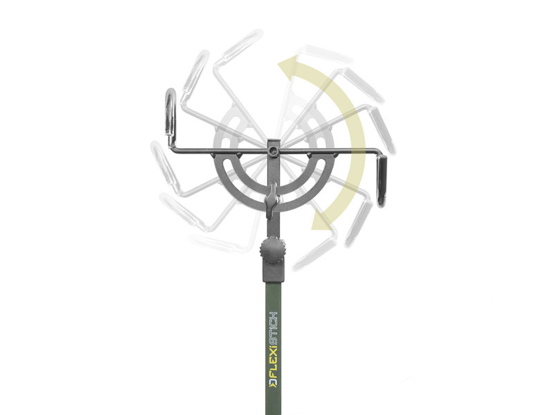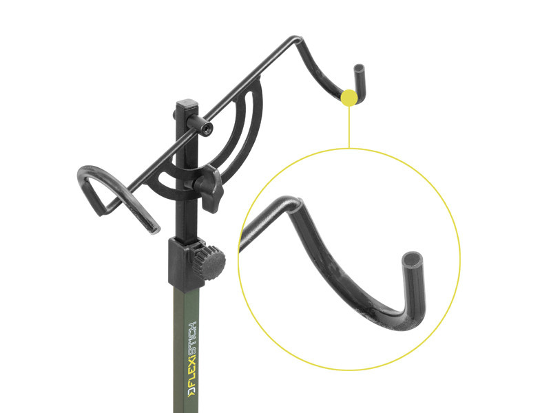 Het bovenste deel, dat de hengel vasthoudt, is gemaakt van stevig zwart draad met een speciale vorm die geschikt is voor elke hengel. De gebogen voor- en achterkant zijn met rubber bekleed, zodat de hengel niet wegglijdt en niet beschadigd raakt. De houder is voorzien van een verstelbaar mechanisme waarmee u hem in verschillende hoeken kunt kantelen – naar het wateroppervlak, horizontaal of bijna volledig verticaal.